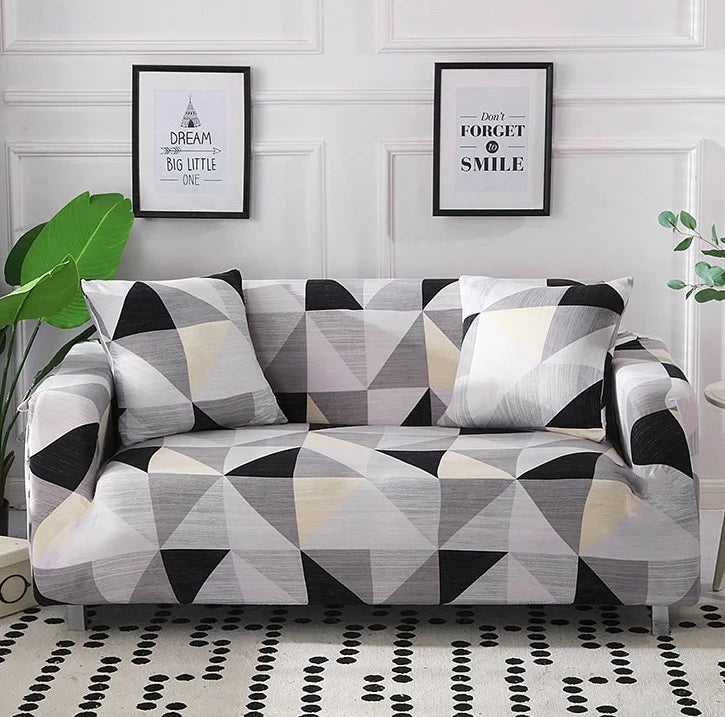 Gray / Black Geometric Triangle Pattern Sofa Couch Cover