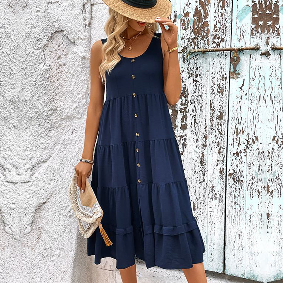 Be the first to review “Solid Color Round Neck Button Up Casual Dress” Cancel reply
