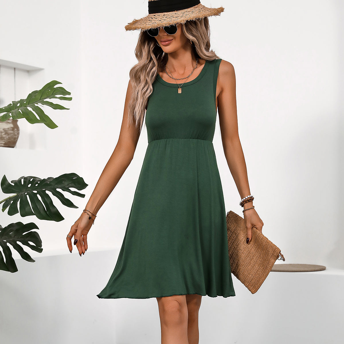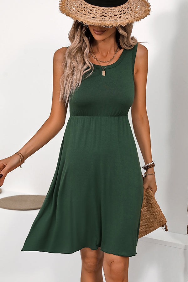 Solid Color Round Neck Sleeveless Casual Dress