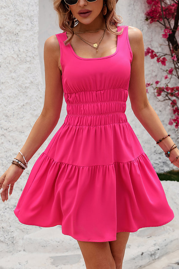 Solid Color Square Neck Ruffle Hem Mini Dress