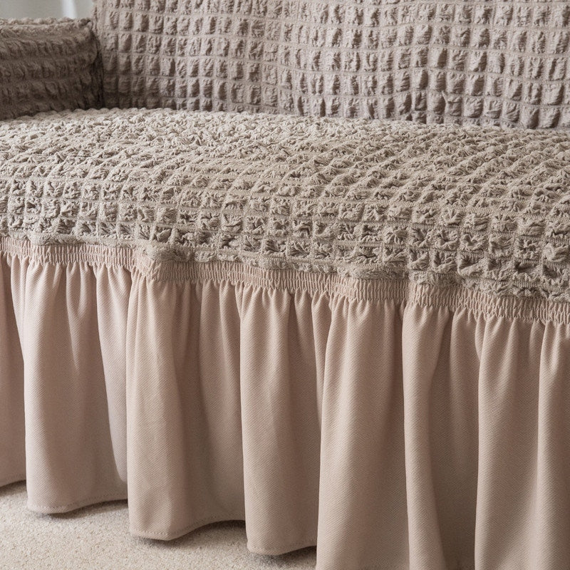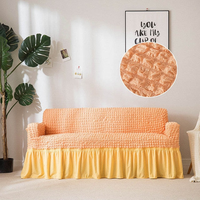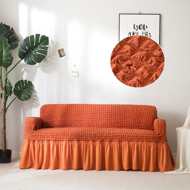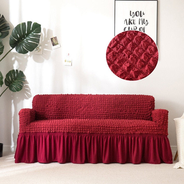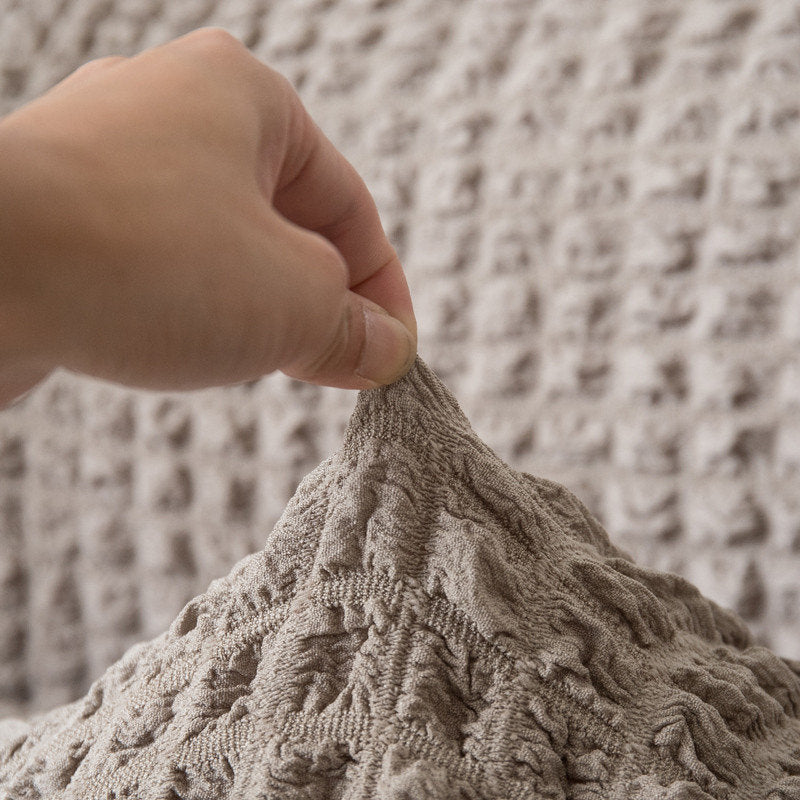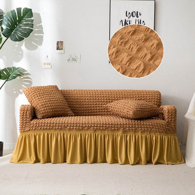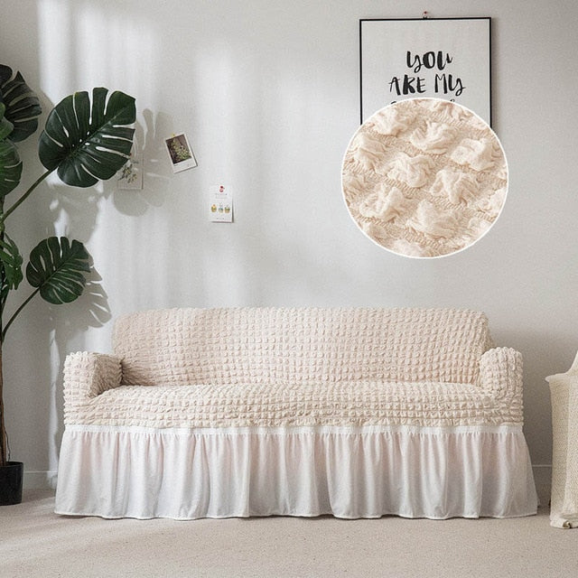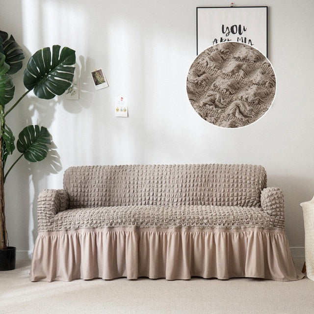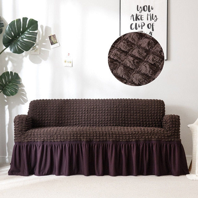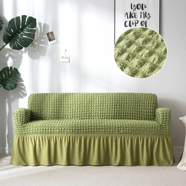 Solid-Color Textured Elastic Sofa Cover w/ Skirt