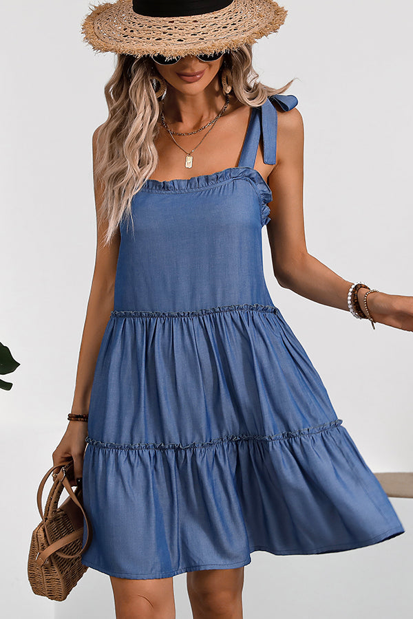 Be the first to review “Solid Color Tie Shoulder Frill Casual Dress” Cancel reply