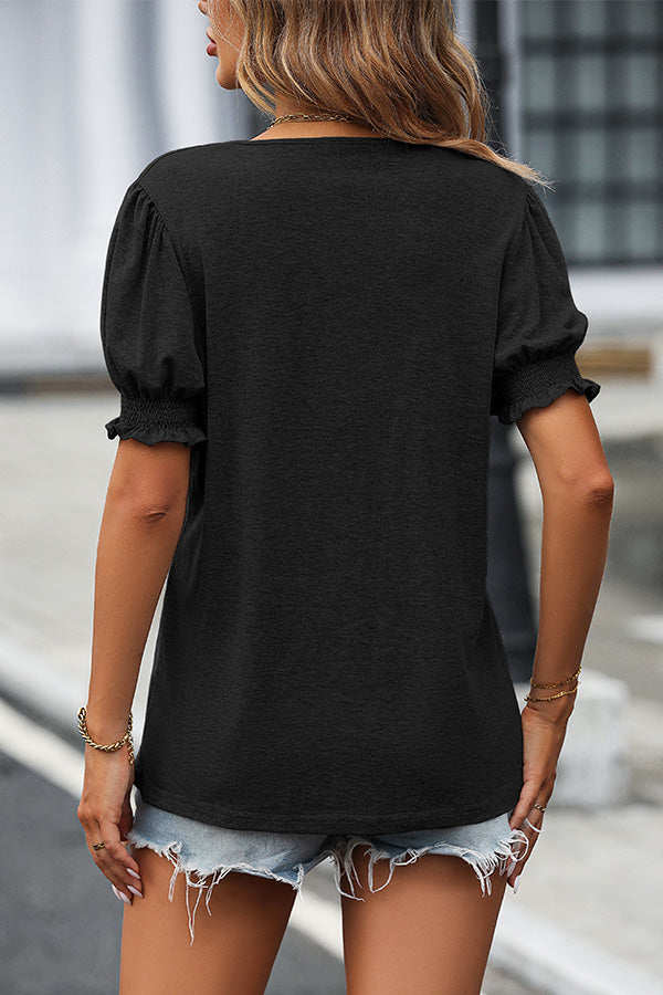 Be the first to review “Solid Color V Neck Puff Sleeve Casual Tops” Cancel reply