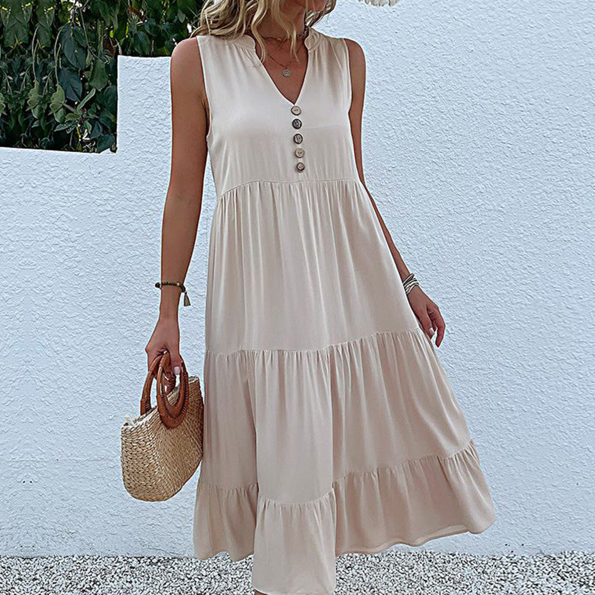 Be the first to review “Solid Color V Neck Sleeveless Casual Dress” Cancel reply