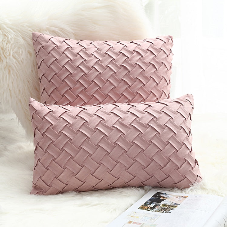 Solid Gray / Pink Weaved Faux Suede Throw Pillow Cover