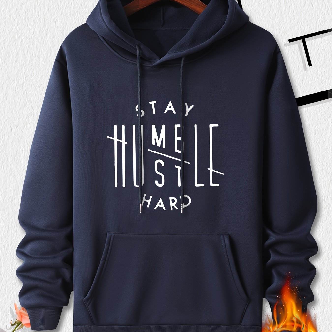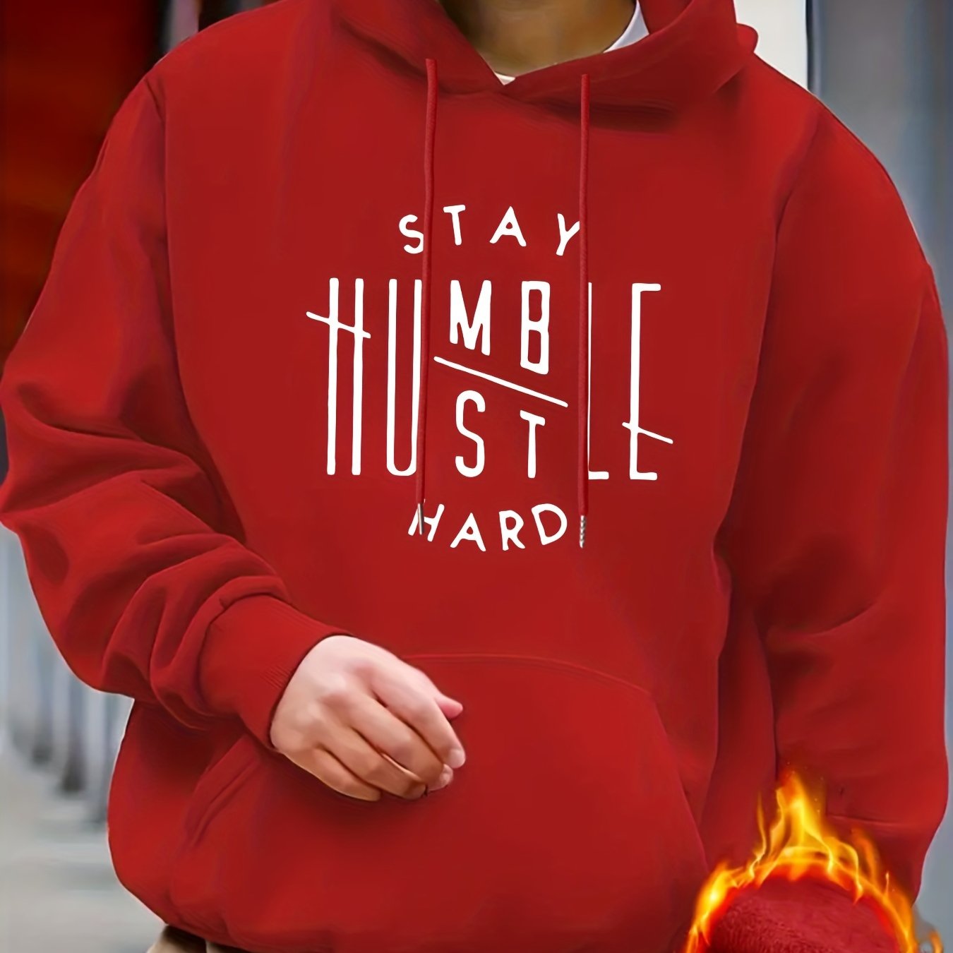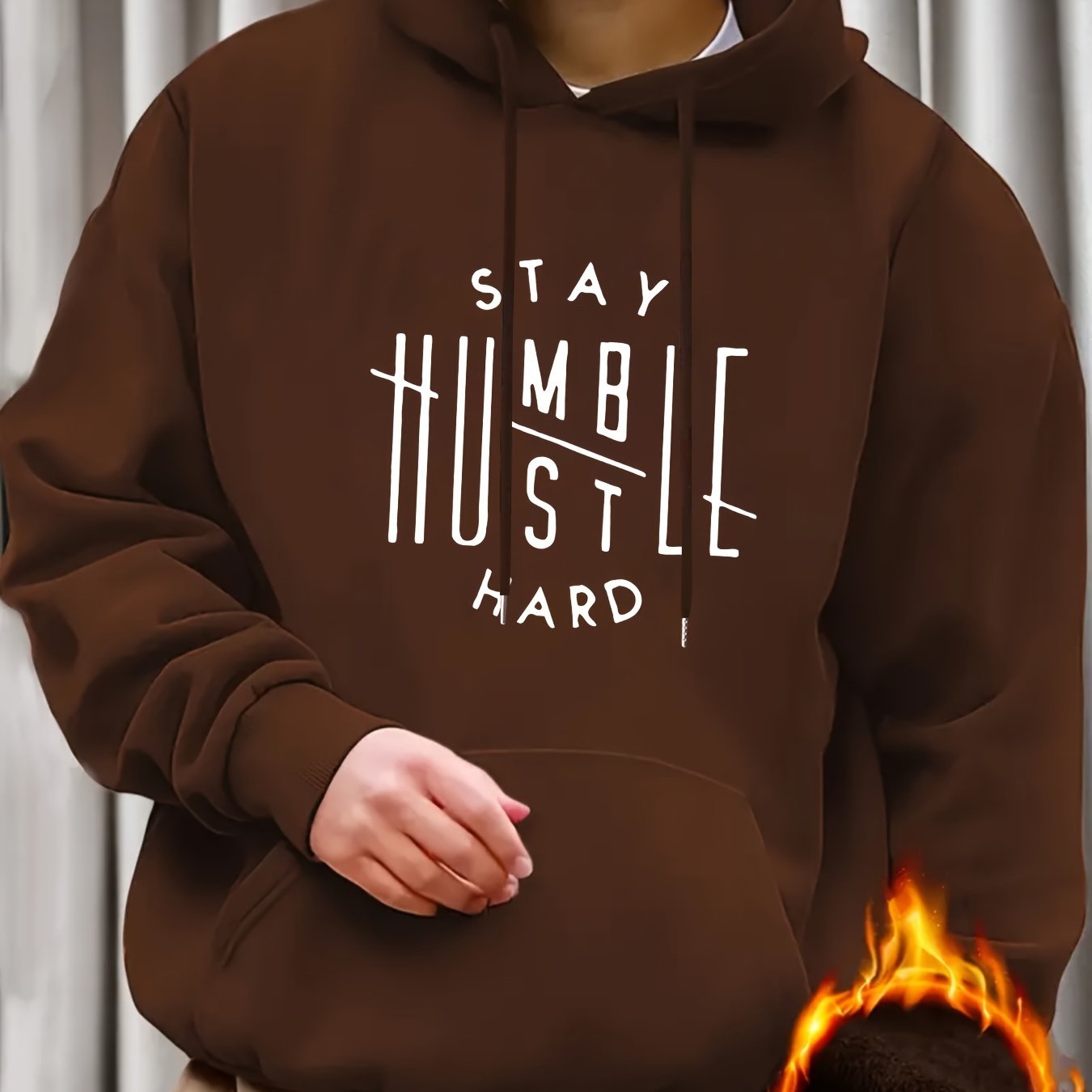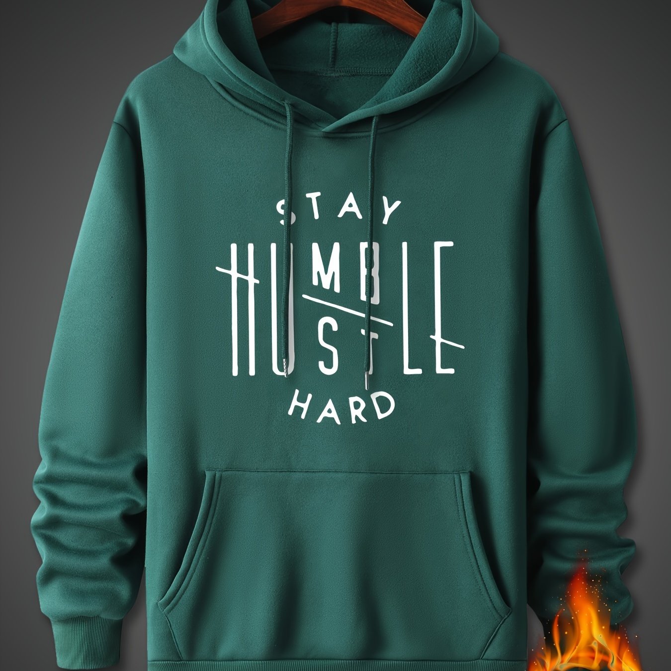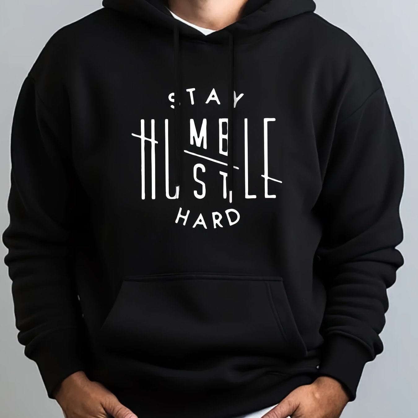 Stay Humble & Hustle Print Hoodie, Cool Hoodies For Men, Men’s Casual Graphic Design Pullover Hooded Sweatshirt With Kangaroo Pocket Streetwear For Winter Fall, As Gifts