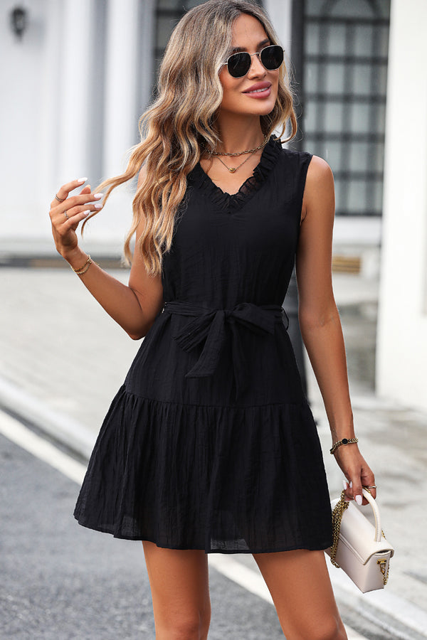 Black And Sleeveless Casual Mini Dress