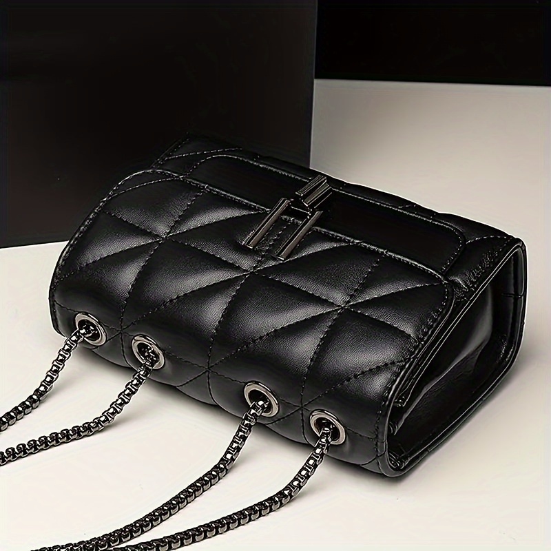 Stylish Chain Crossbody Bag, Argyle Quilted Shoulder Bag, Classic Small Handbag, Purse For Women