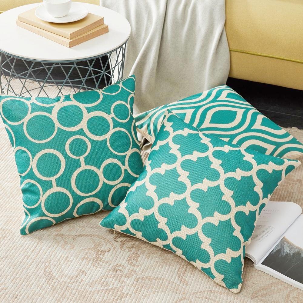 Teal Turquoise Geometric Pattern Pillow Cushion Cover