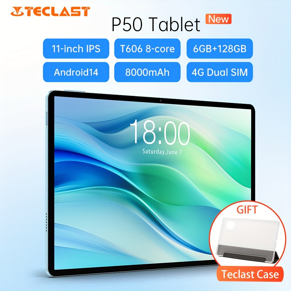 Teclast P50 Tablet PC 11-inch TDDI Display, Unisoc T606 Octa-Core Mali-G57 GPU, 6GB+8GB Expansion RAM 128GB Storage ROM With 1TB Expand, LTE Support Dual SIM, Android 14 Operating System, Metal Unibody 8000mAh Battery Type-C, 13MP+8MP Camera