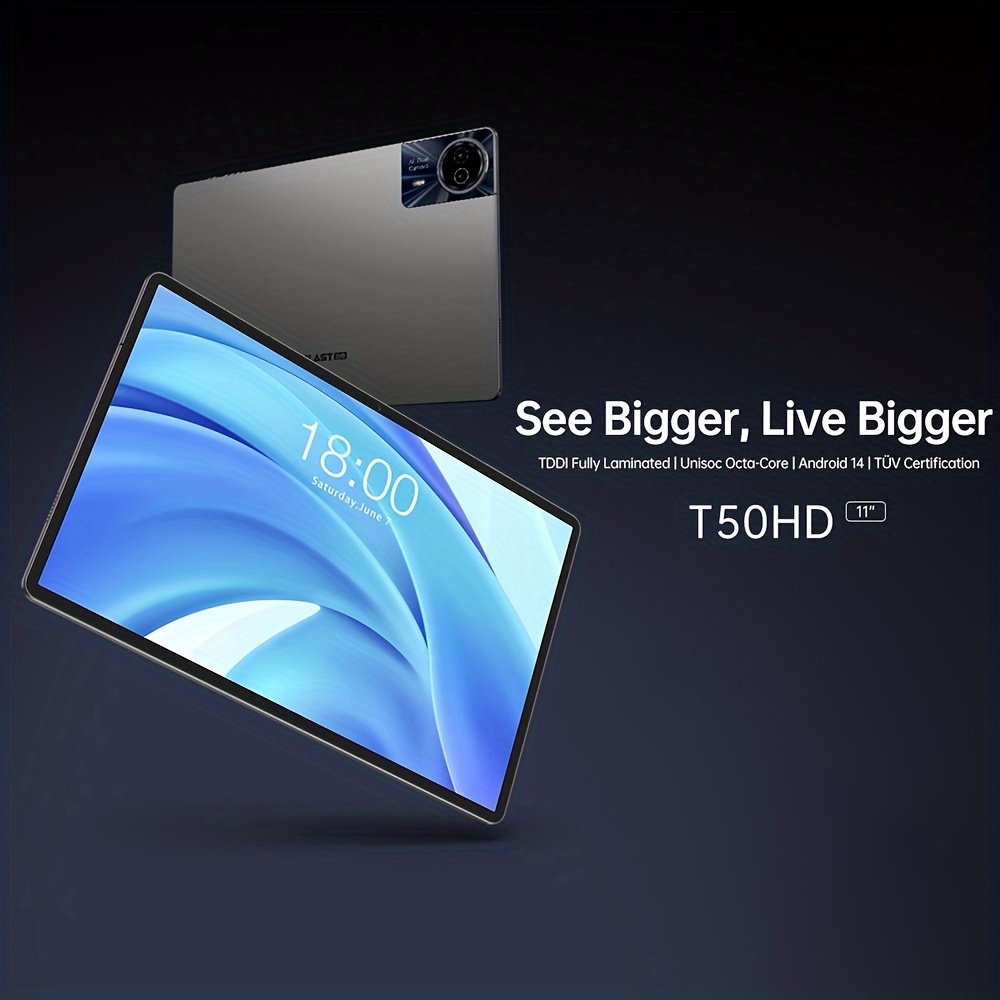Teclast T50HD tablet PC 11-inch TDDI Display 1920×1200, Unisoc T606 Octa-Core CPU, 6GB RAM 256GB ROM With 1TB TF card Expansion, LTE Support Dual SIM Android 14 WiFi Tablet, 8000mAh Battery with versatile Type-C port, 8MP+13MP Rear Cameras