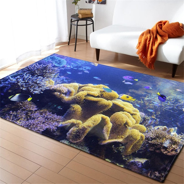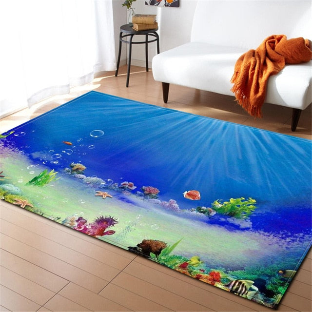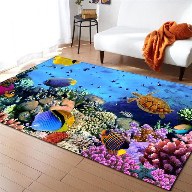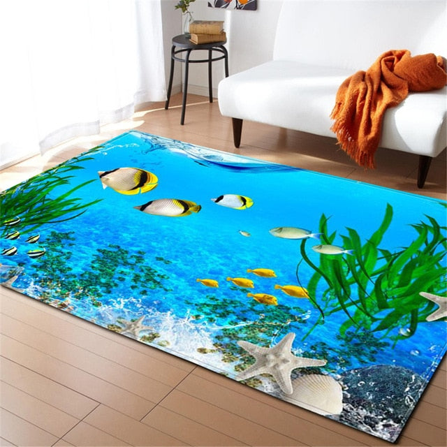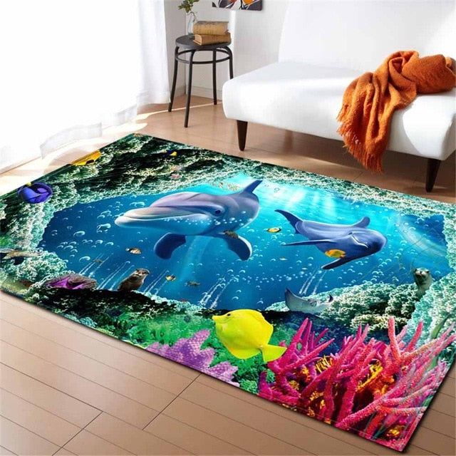 Underwater Dolphin / Fish Ocean Print Area Rug Floor Mat