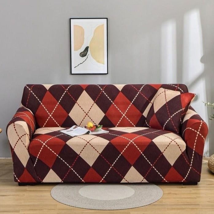 Burgundy Red Plaid Tartan Pattern Sofa Couch Cover