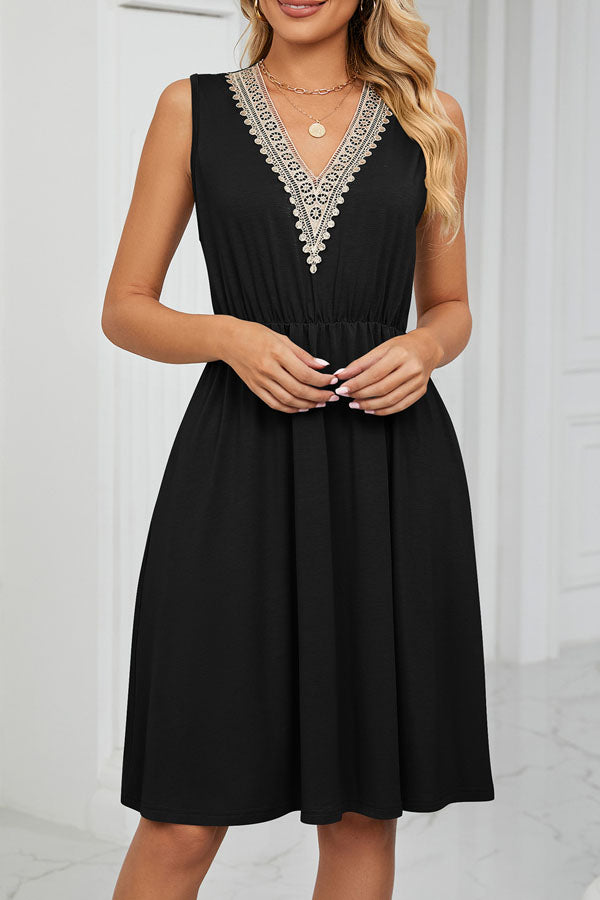 Be the first to review “V Neck Patchwork High Waist Solid Color Dress” Cancel reply