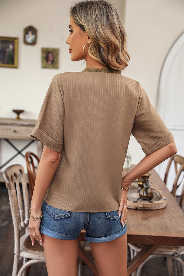 Be the first to review “V Neck Patchwork Solid Casual Tops” Cancel reply