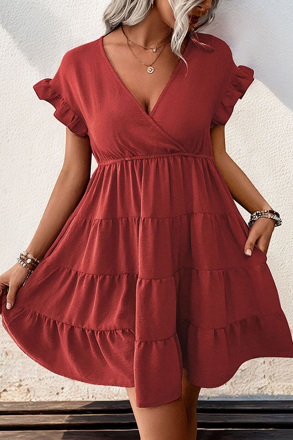 V Neck Ruffle Hem Short Sleeve Casual Dress