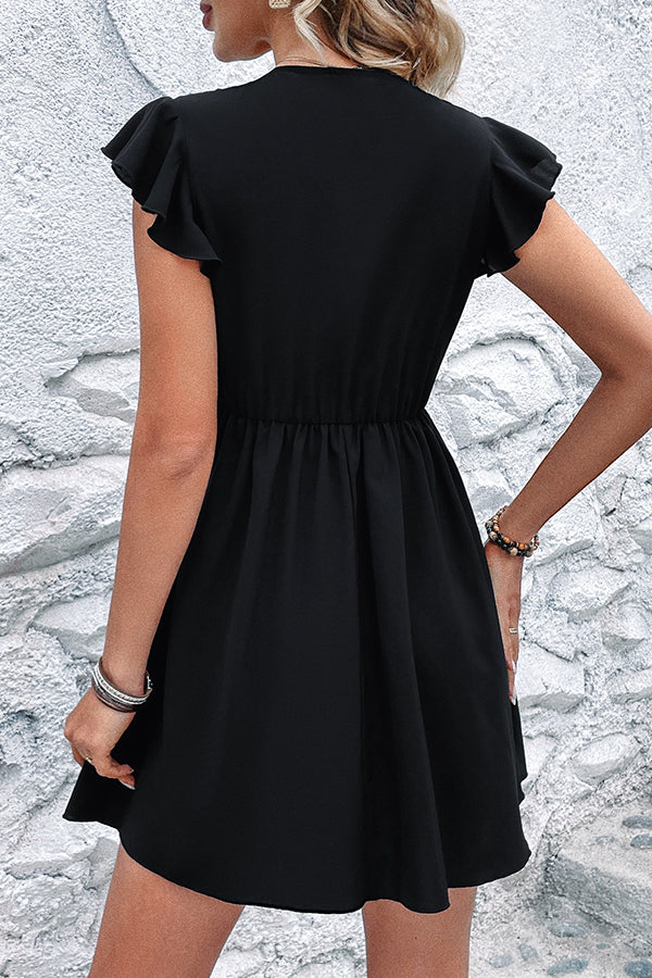 V Neck Solid Color Patchwork Casual Mini Dress