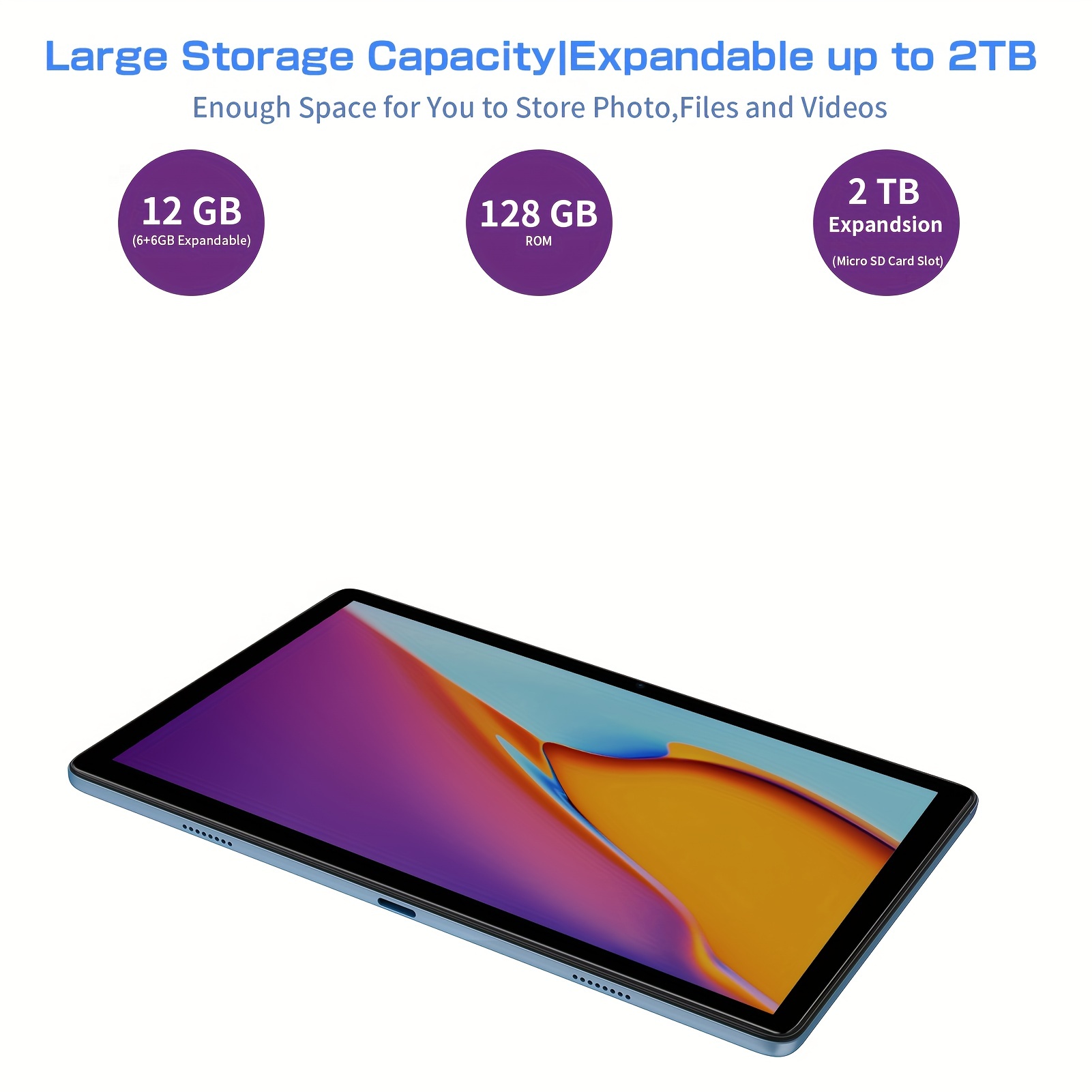 VASOUN 25.65 Cm Android 13 Tablet PC With Case, 12GB (6GB+6GBExpansion) RAM, 128GB ROM, Support Micro SD Expansion, 8000Mah Battery, Eight Core Processor, 25.4 Cm Tablet IPS HD Display, DUAL Camera, Wi-Fi, Google, Phone Tablet PC