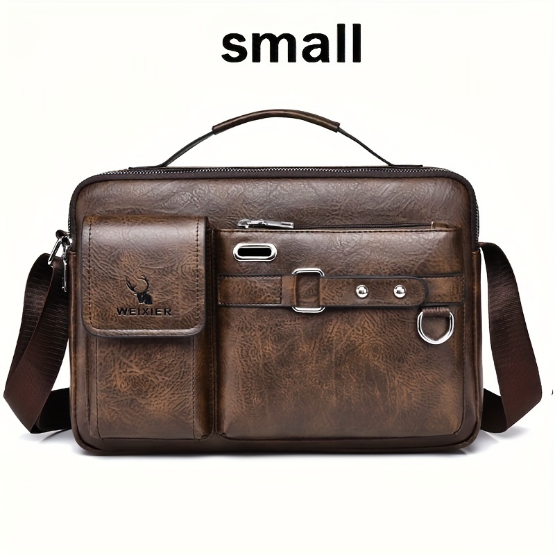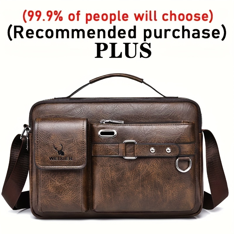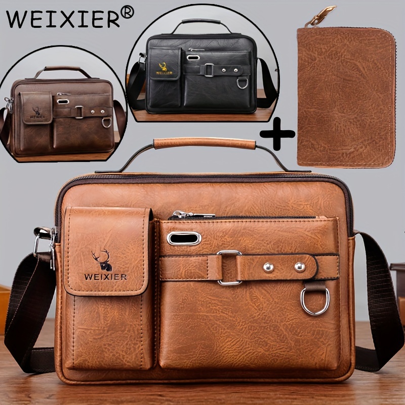 [WEIXIER] Men’s PU Material Crossbody Bag Men’s Business Crossbody Bag Portable Shoulder Bag Casual Bag Men’s Bag Gift For Father/Anniversary