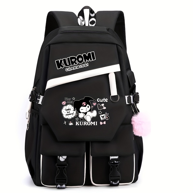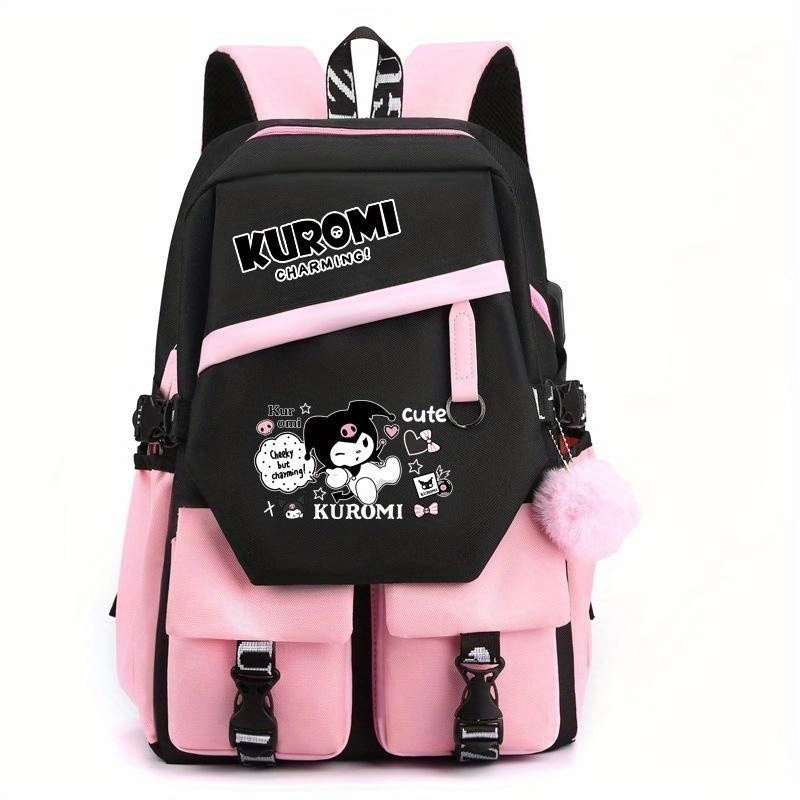Kuromi Pattern Backpack, Kawaii Stylish School Bag, Women’s Colorblock Rucksack