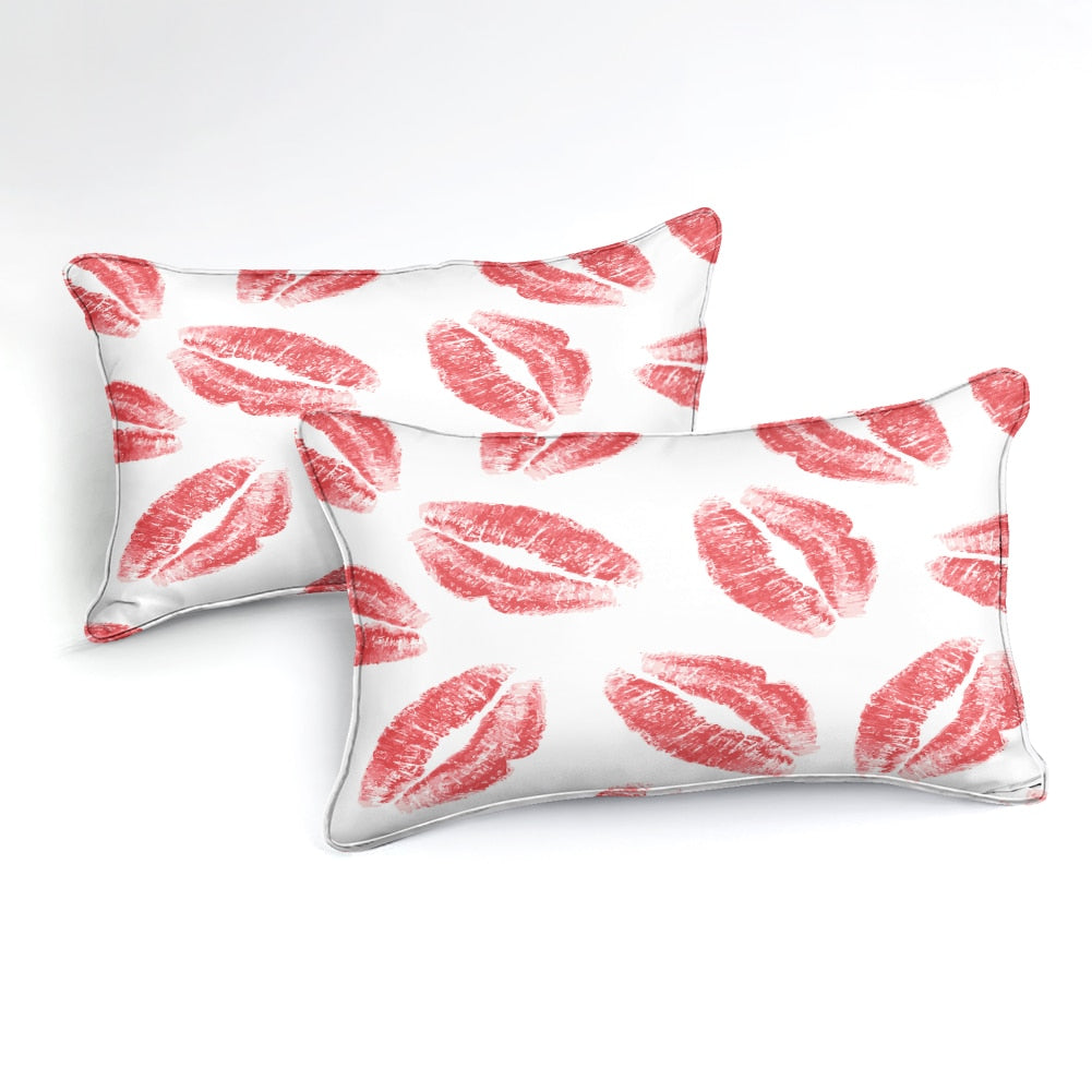White 2/3-Piece Kissing Red Lip Pattern Duvet Cover Set