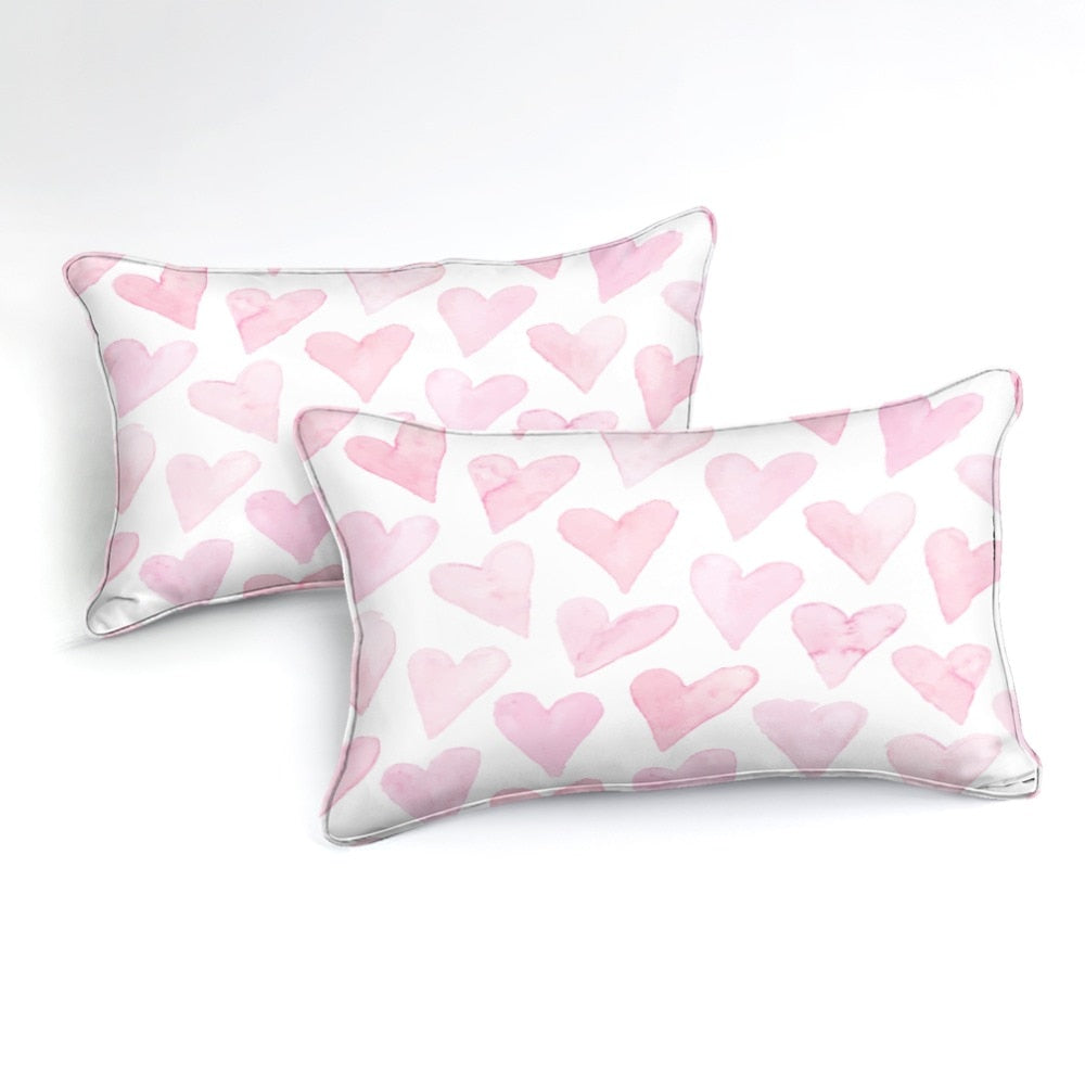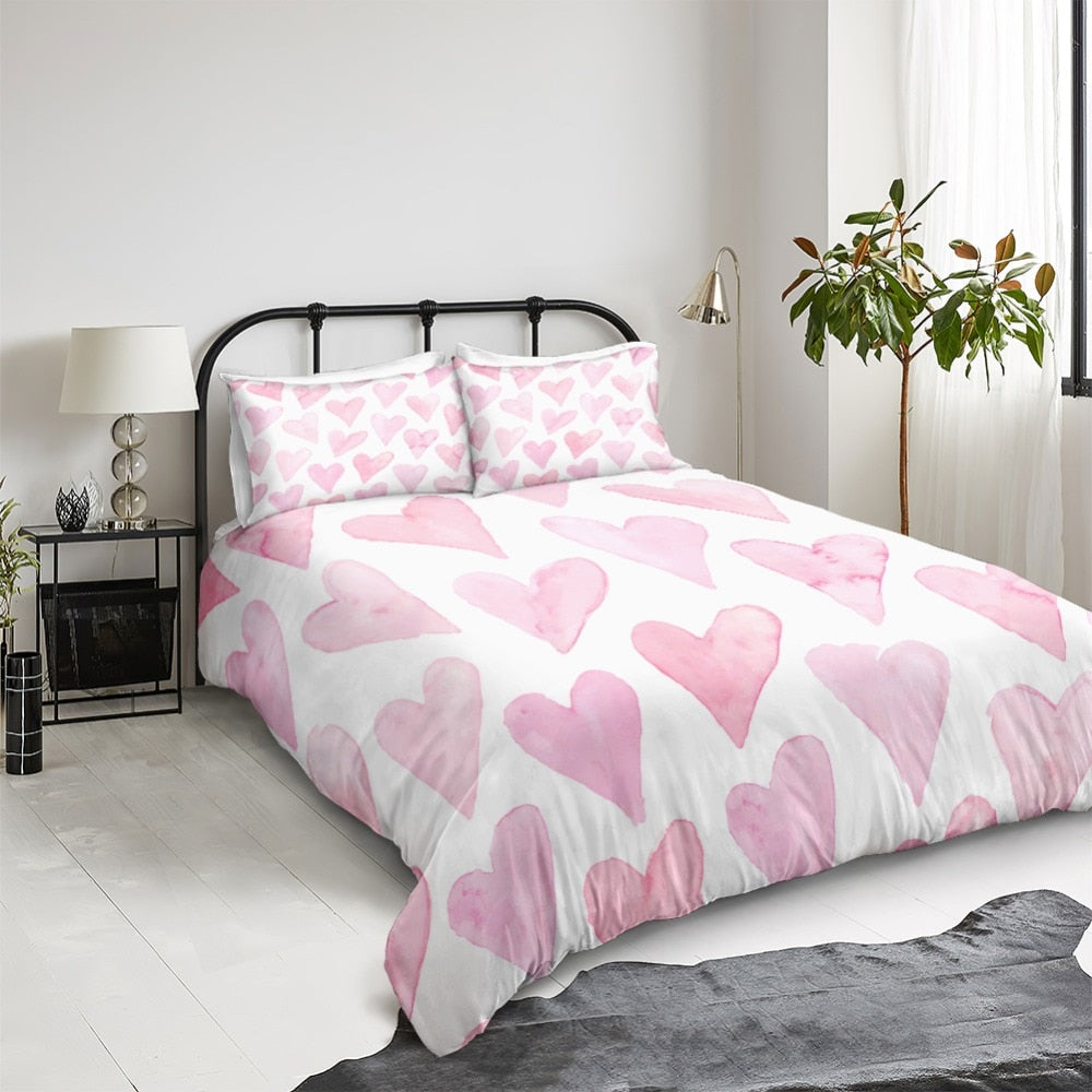 White 2/3-Piece Painted Pink Heart Pattern Duvet Cover Set