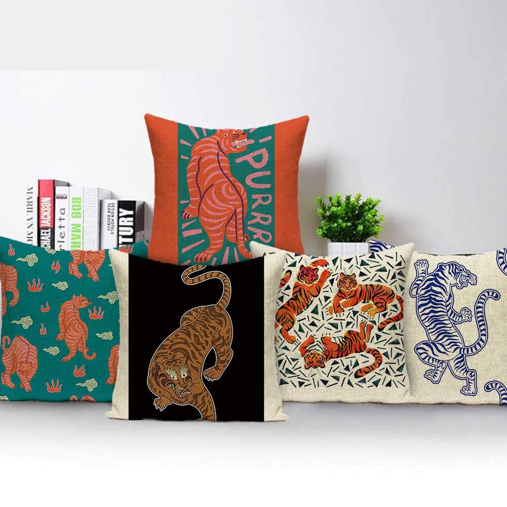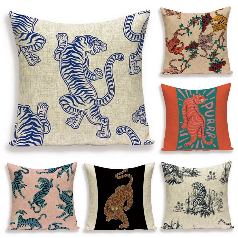 18″ Vintage Asian Tiger Print Throw Pillow Cover