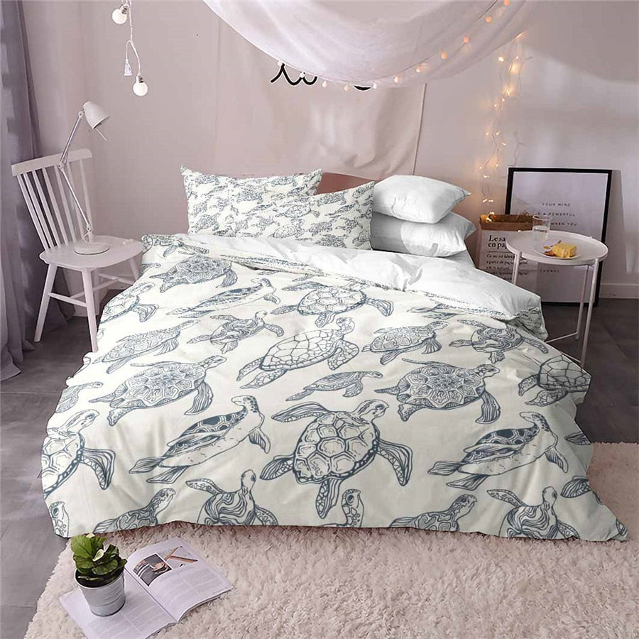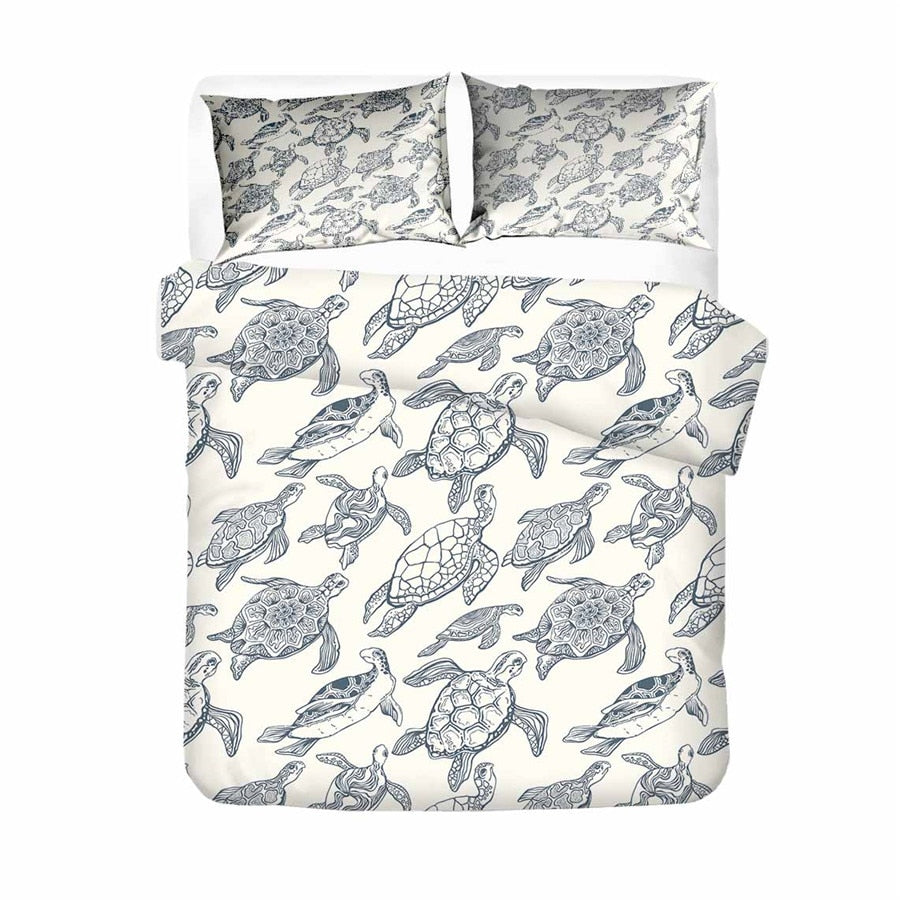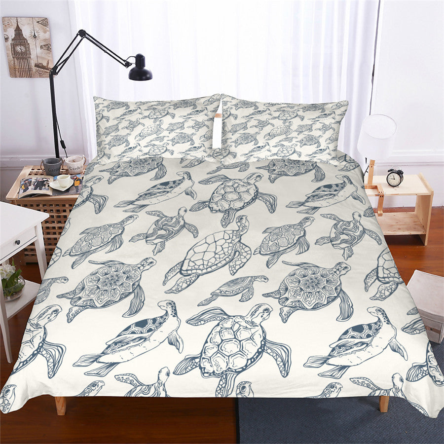 White 3-Piece Sea Turtle Pattern Duvet Cover Bedding Set
