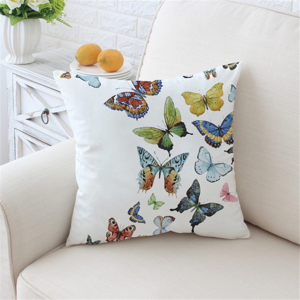 White Colorful Flying Butterflies Throw Pillow Cover