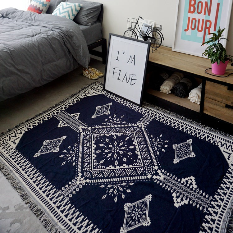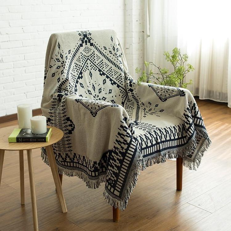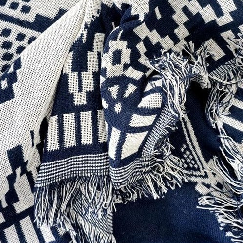 White / Navy Knitted Nordic Sofa Throw Cover Blanket