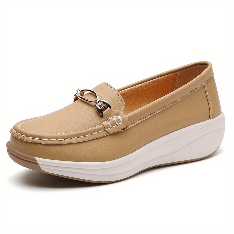 Women’s Casual Loafers, Metallic Buckle Decor Slip On Shoes, Casual Comfortable Soft Sole Walking Shoes