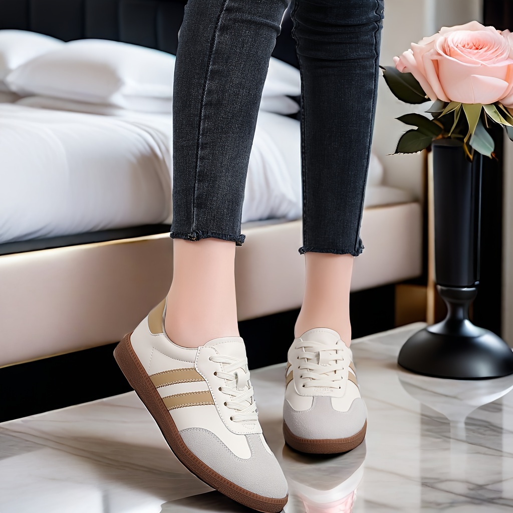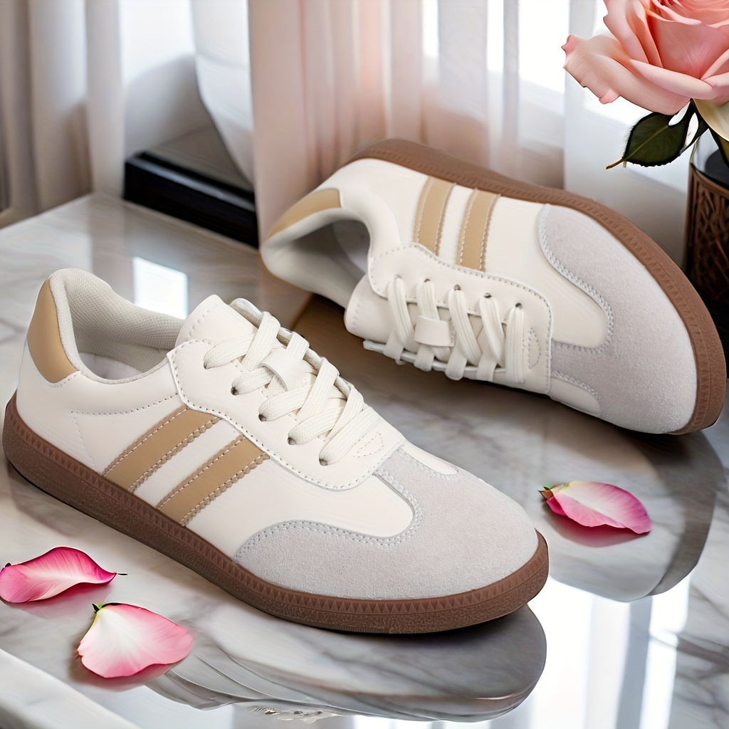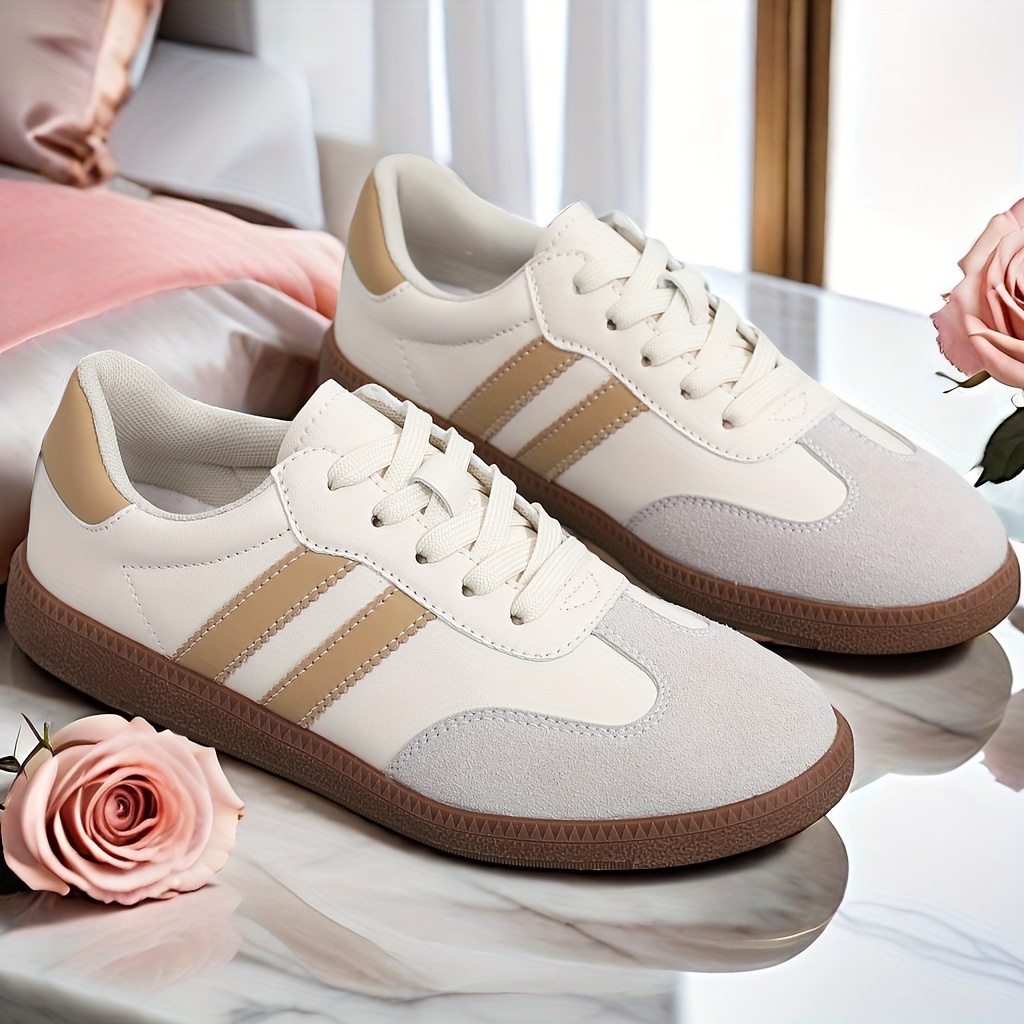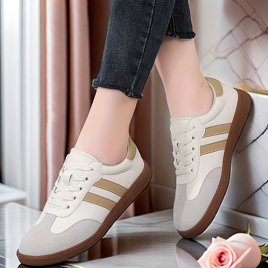 Women’s Fashion Colorblock Sneakers, Lace-Up Low-Top Casual Skate Shoes With Soft Platform Sole, Durable Versatile For Walking And Everyday Wear