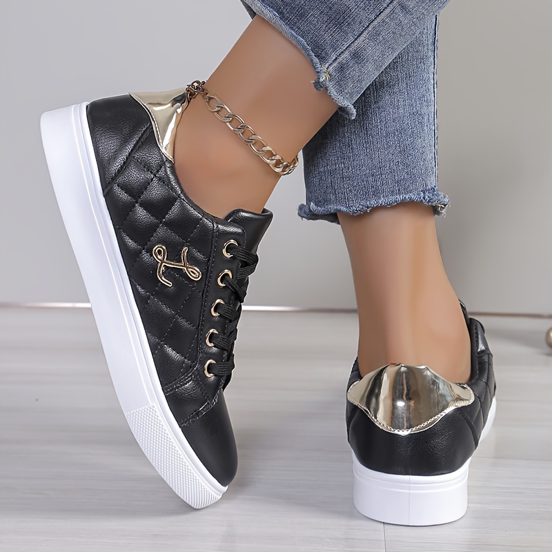 Women’s Colorblock Trendy Sneakers, Lace Up Soft Sole Platform Skate Shoes, Low-top Versatile Shoes