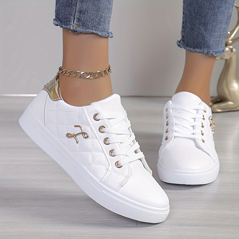 Women’s Plaid Pattern Sneakers, Casual Lace Up Outdoor Shoes, Comfortable Low Top Shoes