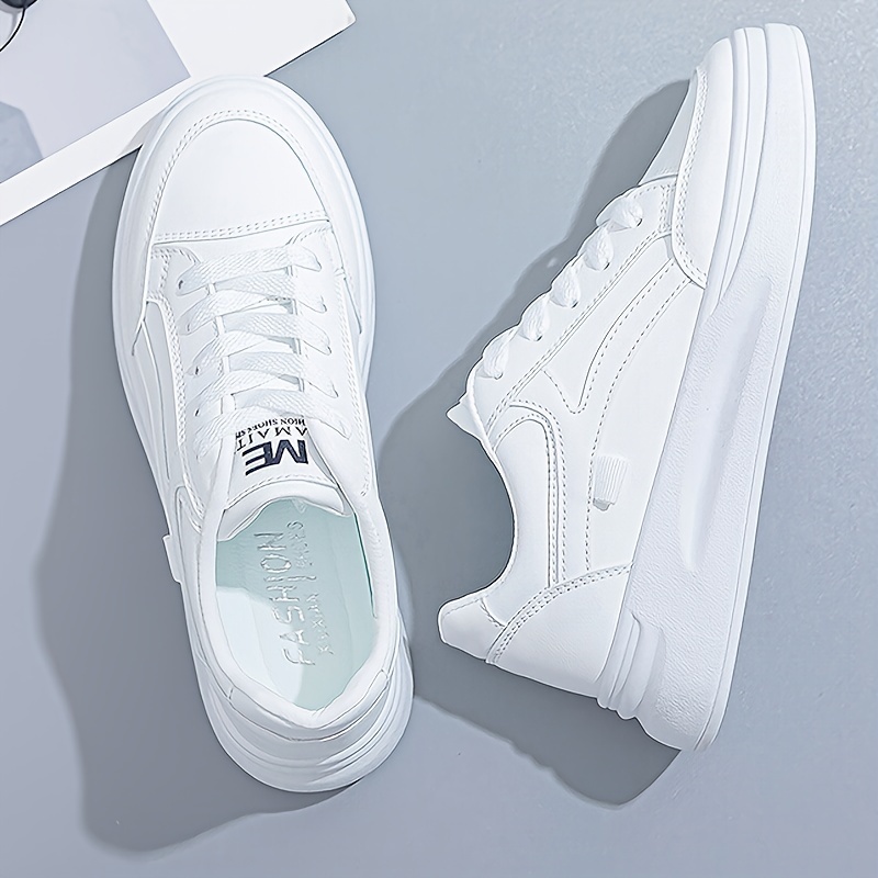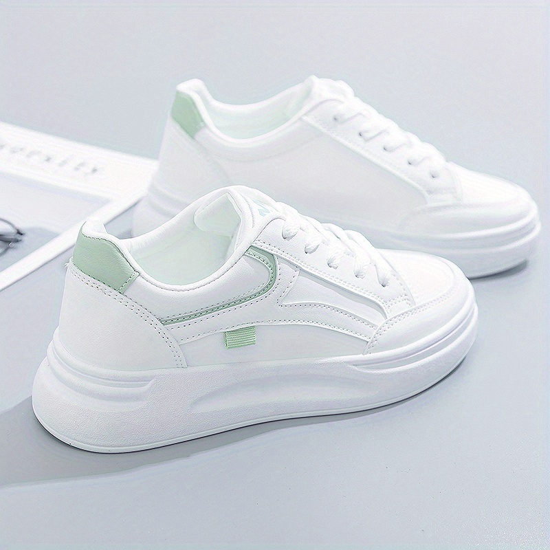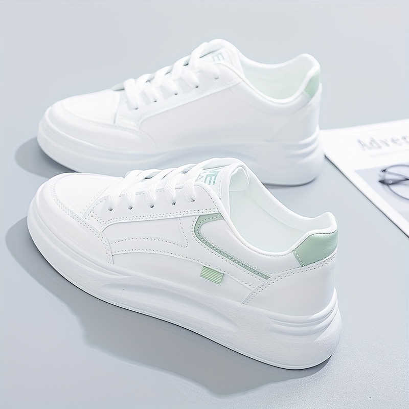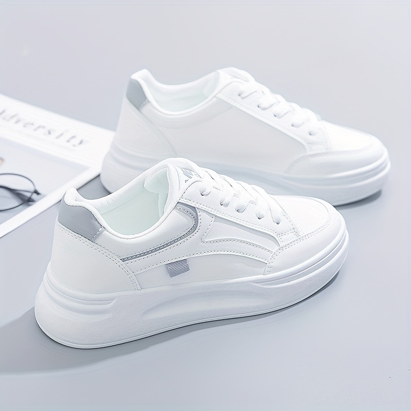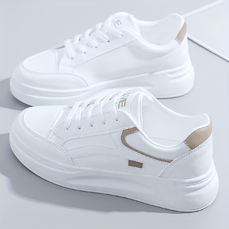 Women’s Platform Skate Shoes, Versatile Height Increasing Lace Up Low Top Shoes, Outdoor Walking White Shoes
