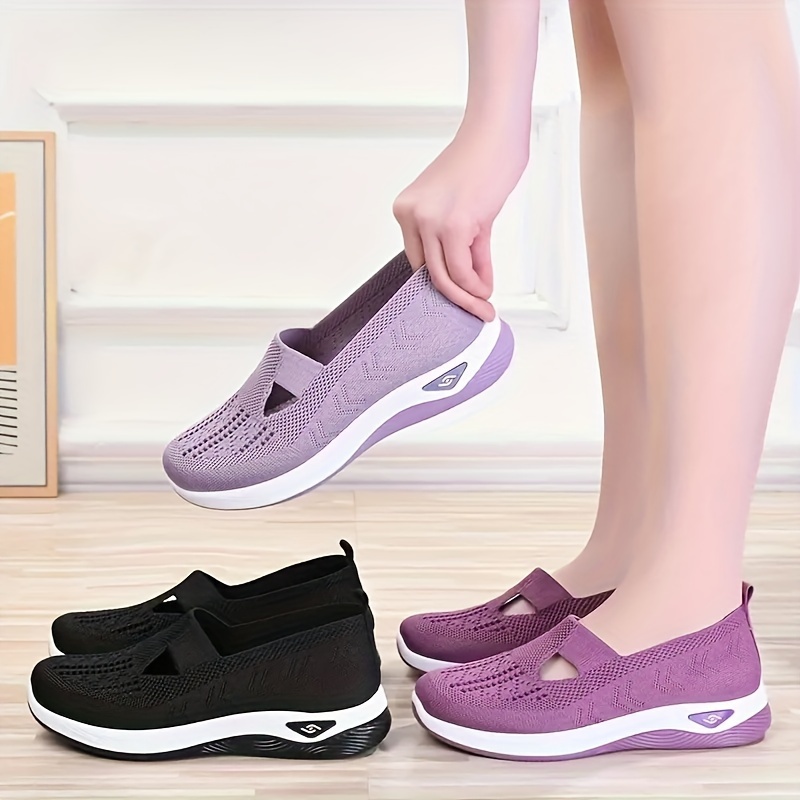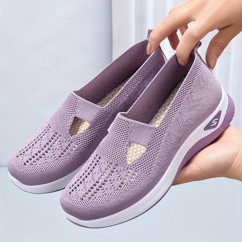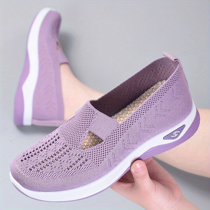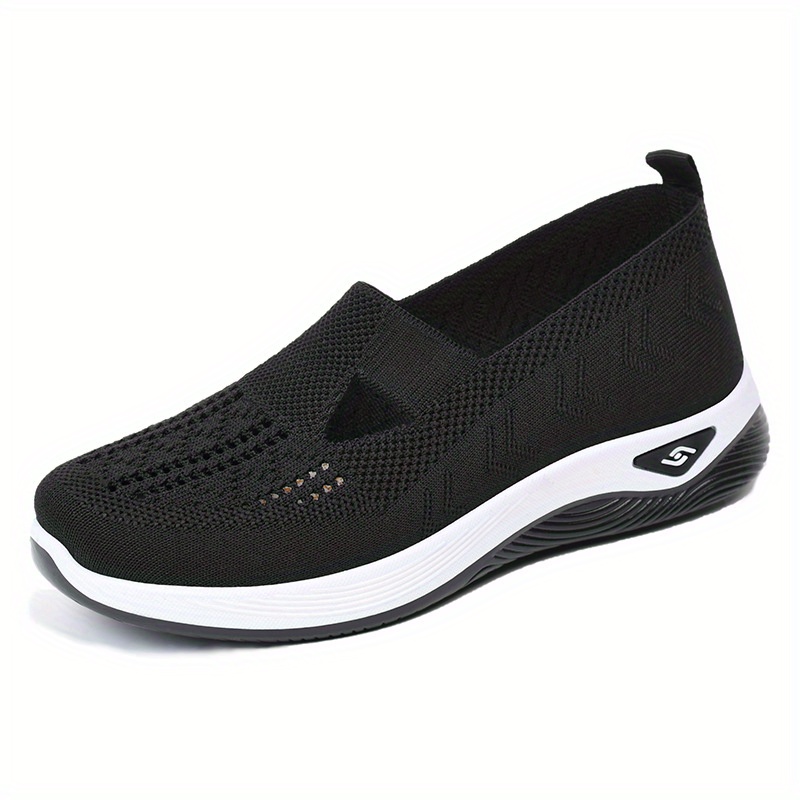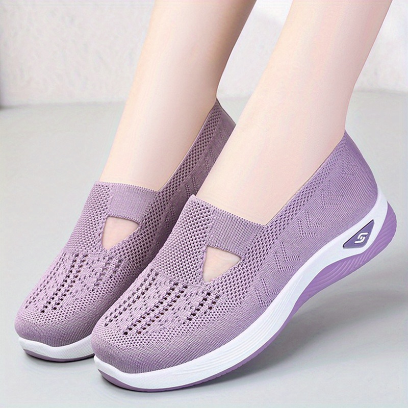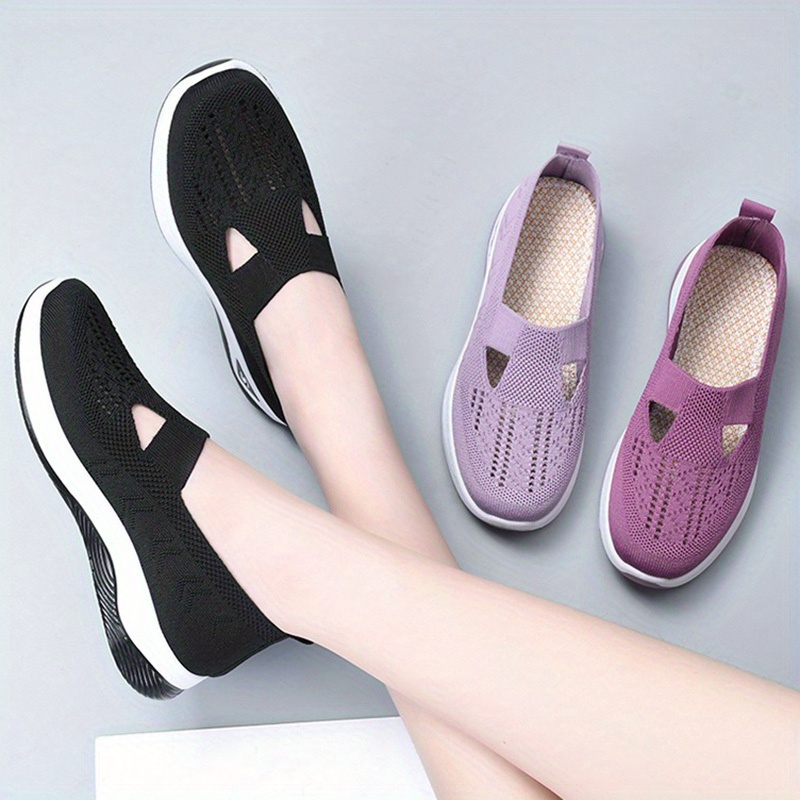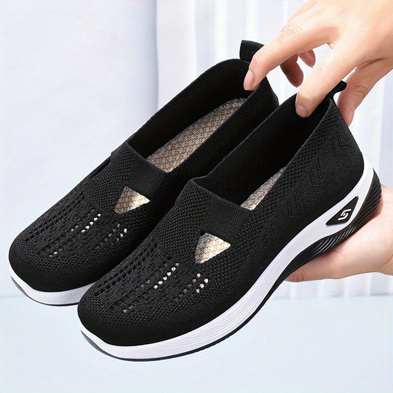 Women’s Solid Color Knitted Sneakers, Soft Sole Platform Slip On Walking Comfort Shoes, Low-top Breathable Shoes