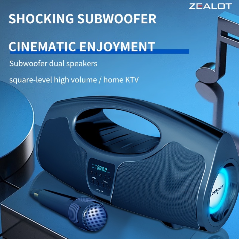 ZEALOT P1 40W Wireless Speakers With Microphone, Outdoor Portable Subwoofer Speaker, Wireless Speaker, Dual Pairing, 7200mAh Battery, 30 Hours Playtime Loud Stereo, Booming Bass. Charging Cable And Aux Cable, FM TF USB Plug-in Card Compatible, Connect Wit