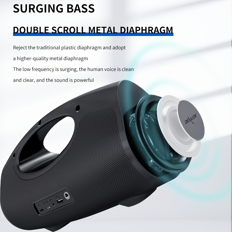 ZEALOT P1 40W Wireless Speakers With Microphone, Outdoor Portable Subwoofer Speaker Wireless Speaker, Dual Pairing, 7200mAh Battery, 30 Hours Playtime Loud Stereo, Booming Bass. Charging Cable And Aux Cable, TF USB Plug-in Card Compatible, Connect With M