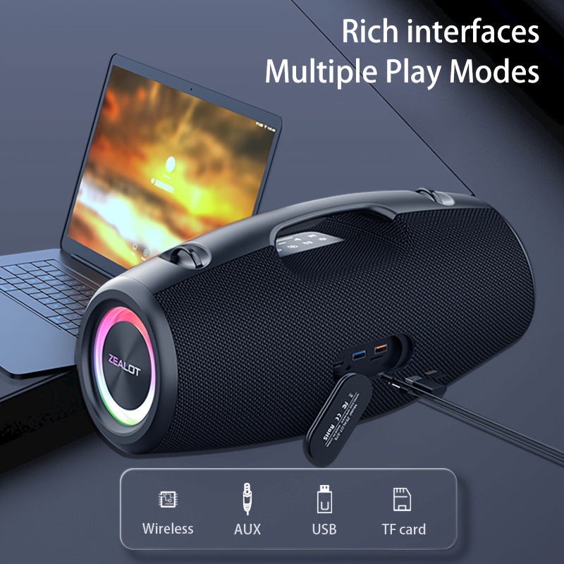ZEALOT S78 100W Wireless Speakers, Outdoor Portable Waterproof Subwoofer. 24000MAh Battery, 36 Hours Playtime Loud Stereo. Compatible With Mobile Phone/Tablet/TV. For Home, Car, Outdoor, Camping.