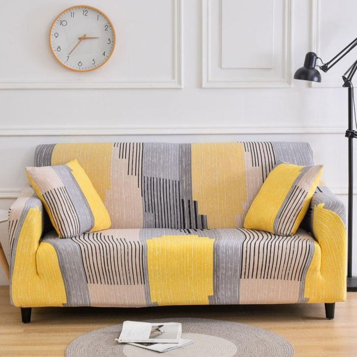 Yellow / Gray Abstract Stripe Pattern Sofa Couch Cover