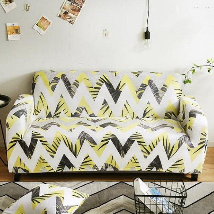 Yellow Zig-Zag Palm Leaf Pattern Sofa Couch Cover