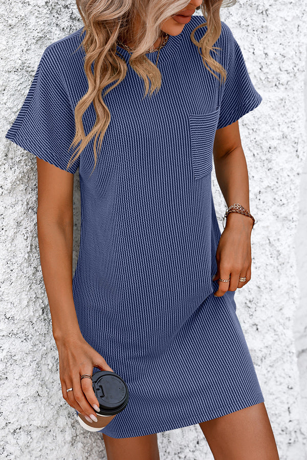 Stripe Print Short Sleeve Dress, Casual Notch Neck Loose Dress For Spring & Summer, Women’s Clothing